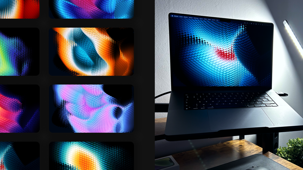 Space Blocks wallpaper pack, featuring 15 desktop and 12 mobile wallpapers, going up to 8K resolution. Each wallpaper has been rendered on 3D software with color variations.